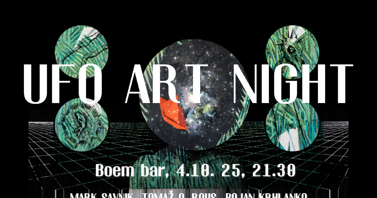 UFO art night / Interdisciplinarni projekt, ki povezuje glasbo in likovno umetnost s pogovori in raziskovanjem neznanega / Mark Savnik, Tomaž O. Rous, Bojan Krhlanko