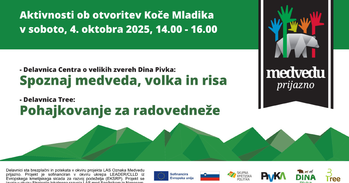 Od 14. do 16. ure bo za otroke potekala brezplačna delavnica »Pohajkovanje za radovedneže«, kjer bodo spoznavali gozd in njegove živali – medveda, volka in risa.