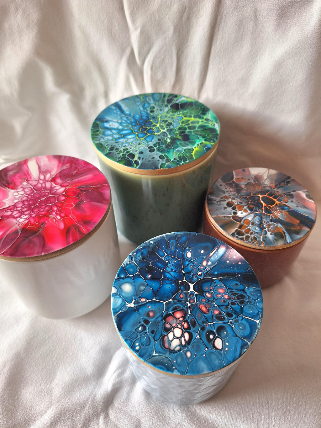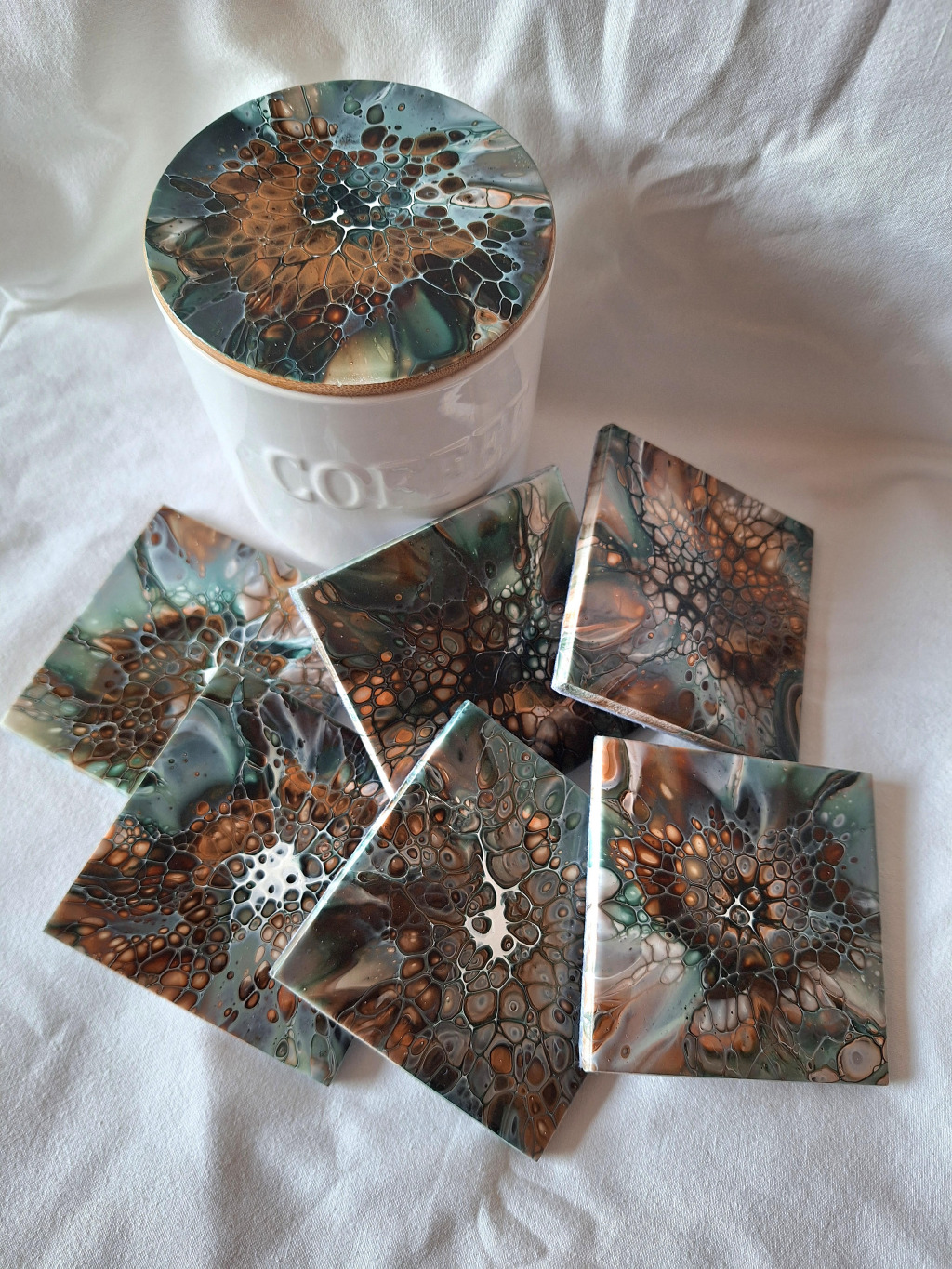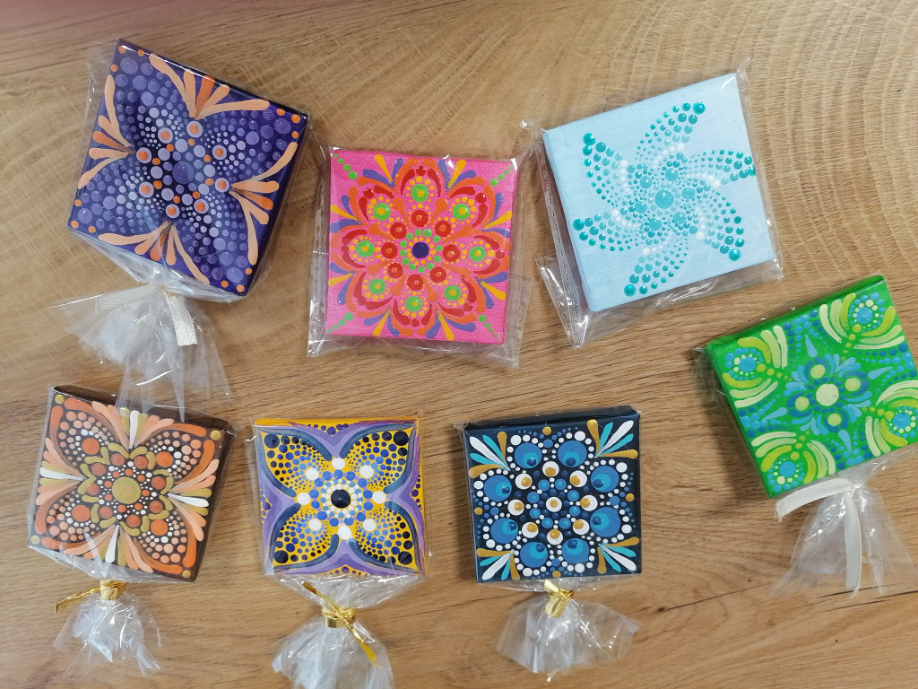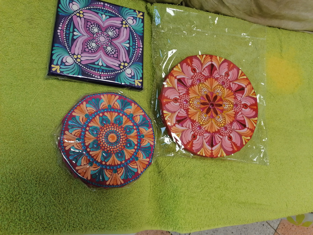 Lara ponuja unikatne podstavke za kozarce, posodice za kavo, sladkor, sol in slike na platnu v tehniki akrilnih barv.