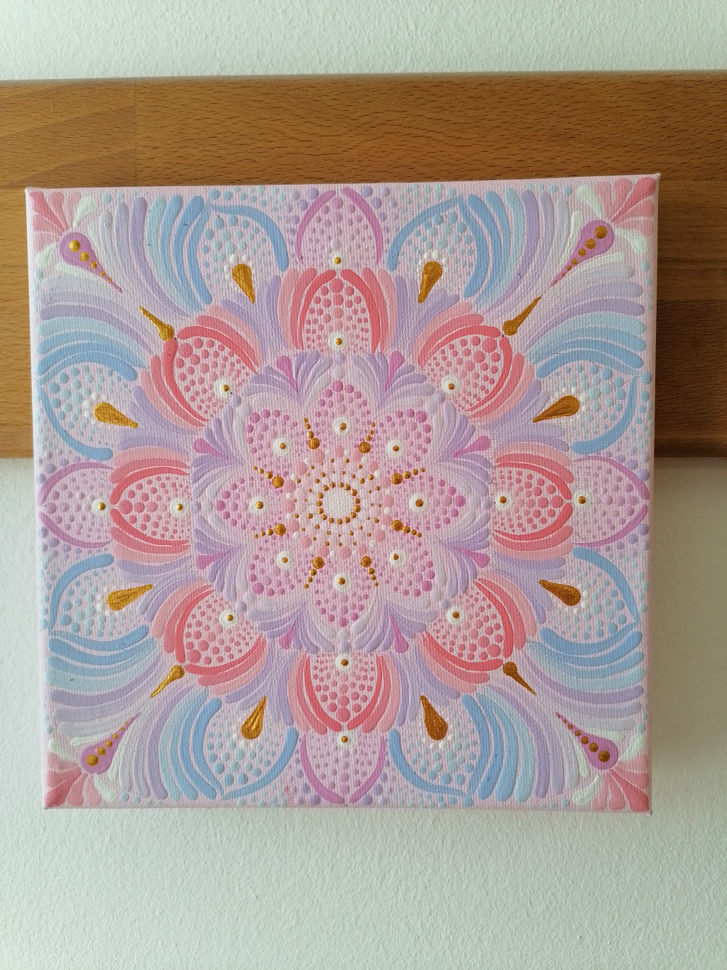 Erika Nabergoj v prostem času riše mandale različnih dimenzij od najmanjših (velikosti 7 x 7 cm) pa vse do večjih (do velikosti 50 x 50 cm). Slika tudi na uporabne izdelke: skodelice za čaj, okrasne lončke, lesene šatuljice, obeske ... Vsi izdelki so lahko čudovita darila.