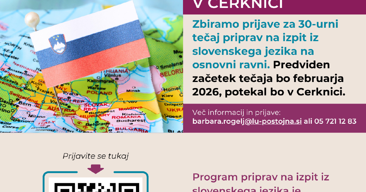 Vabljeni na 30 urni tečaj za pripravo na izpit iz slovenskega jezika.